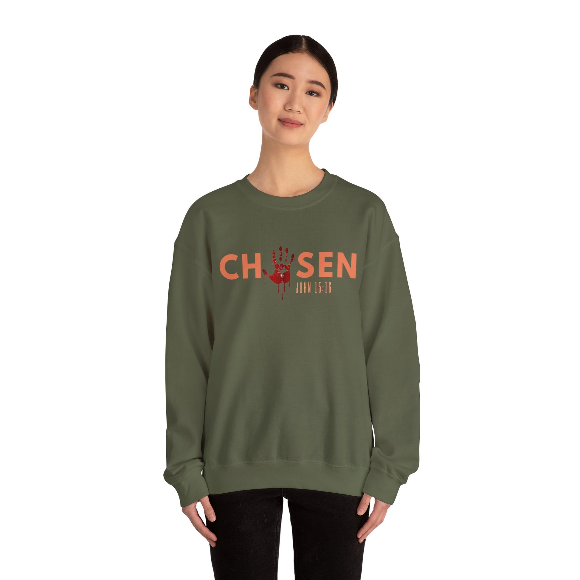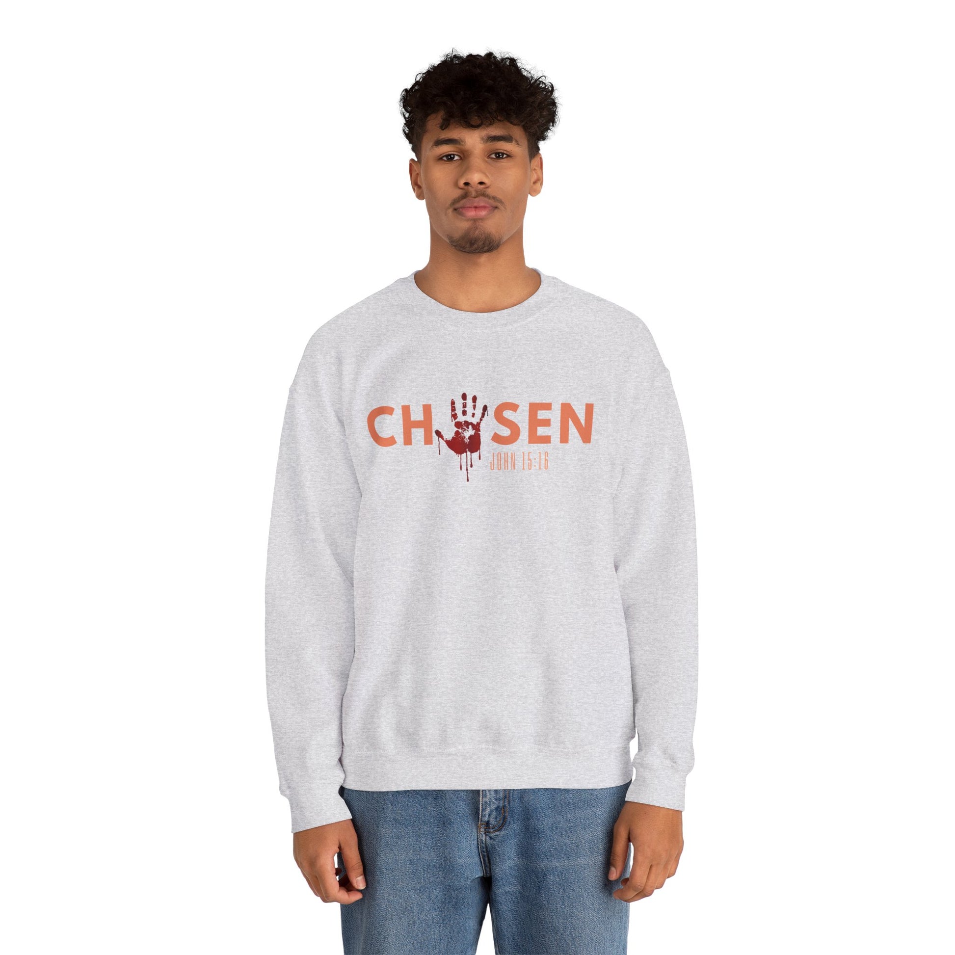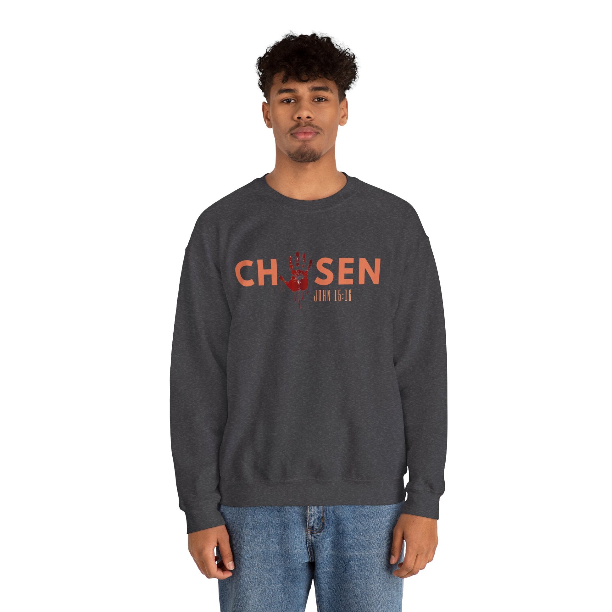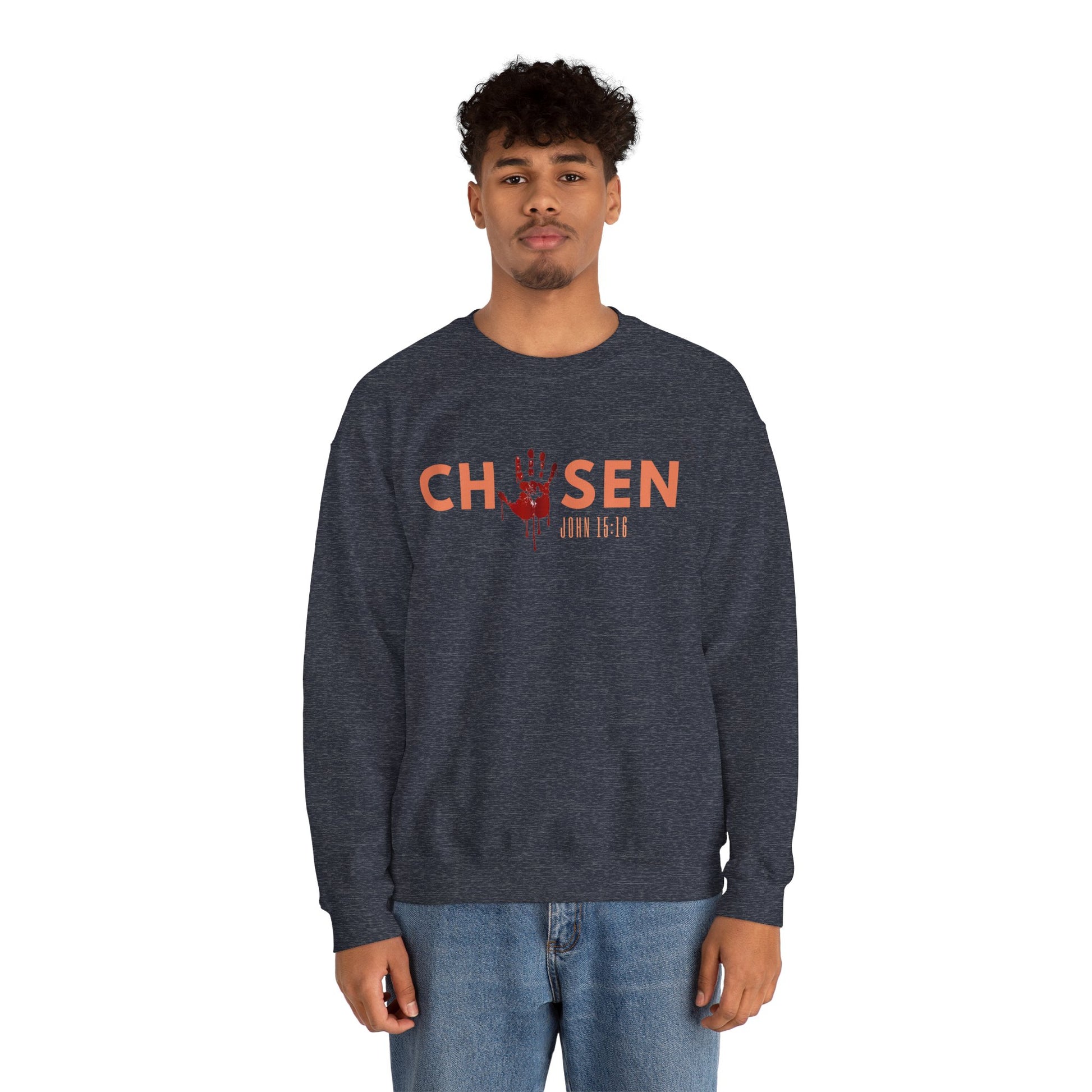Introducing our cozy and stylish Unisex Heavy Blend™ Chosen Crewneck Sweatshirt. Our Chosen sweatshirt is a bold reminder of divine purpose and identity. Inspired by John 15:16, it declares the truth that you were handpicked by God; not by chance, but by design to bear lasting fruit. Made for comfort and style, this unisex sweatshirt combines faith and fashion, reminding you daily that "You are chosen." Perfect for those who walk in purpose and want to wear their faith with confidence.