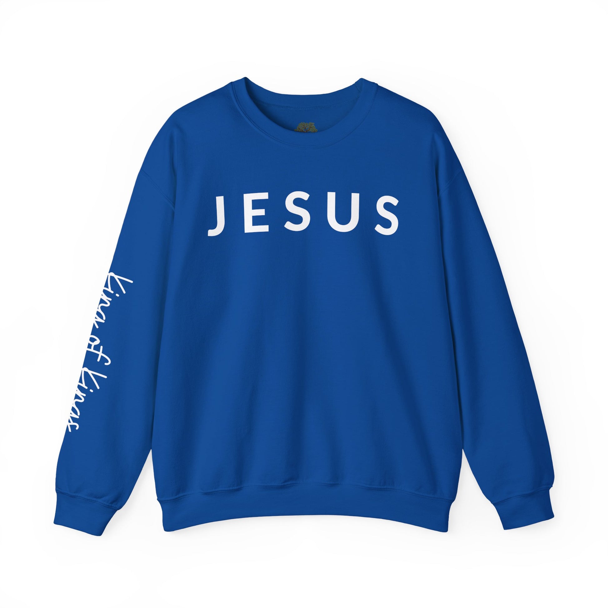 Embrace faith and comfort with this Unisex Heavy Blend™ Crewneck Sweatshirt. The bold 'JESUS' print on the front and elegant detailing on the sleeve creates a statement piece that resonates with Kingdom kids!